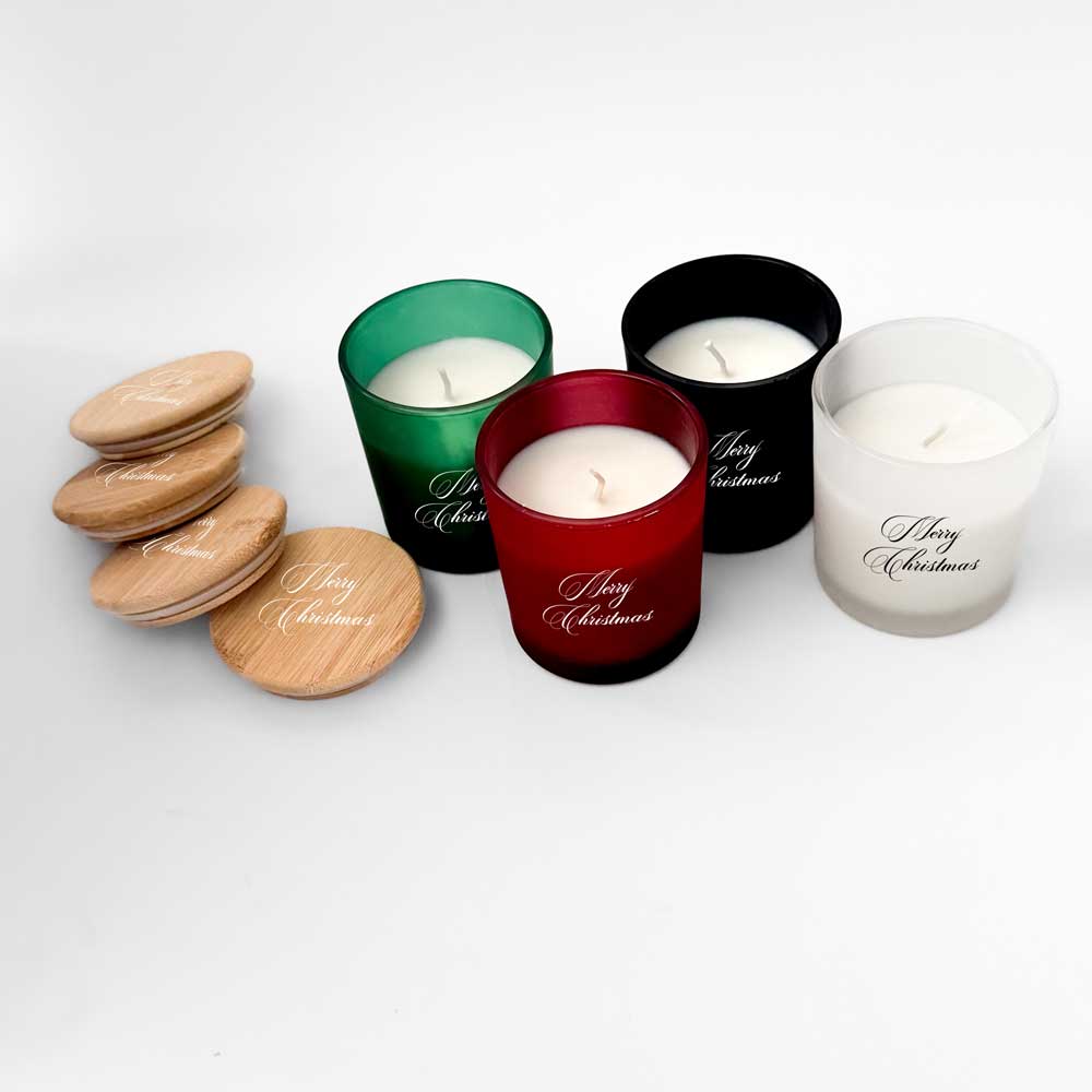 Αρωματικό κερί από φυτικό κερί σε γυάλινο βάζο με αδιαφανές περίβλημα και καπάκι από μπαμπού. 120 γρ. Χρόνος καύσης: 20 ώρες. Διατίθεται σε συσκευασία δώρου από χάρτινο σωληνάριο. Χρώματα Σανταλόξυλο (μαύρο), Κανέλα (Κόκκινο), Βανίλια (Λευκό) και Γιασεμί (πράσινο)