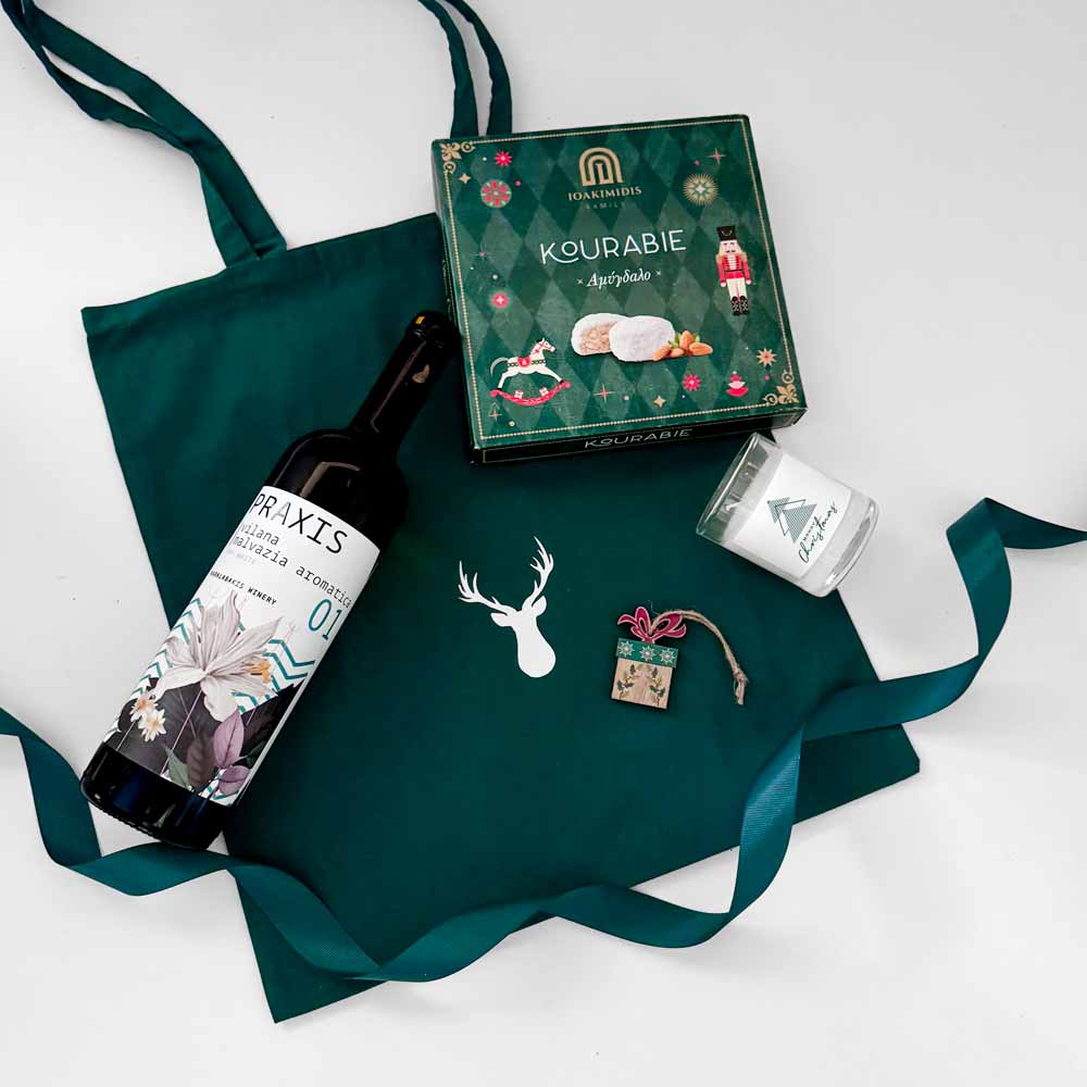 Πράσινη χριστουγεννιάτικη τσάντα με τάρανδο